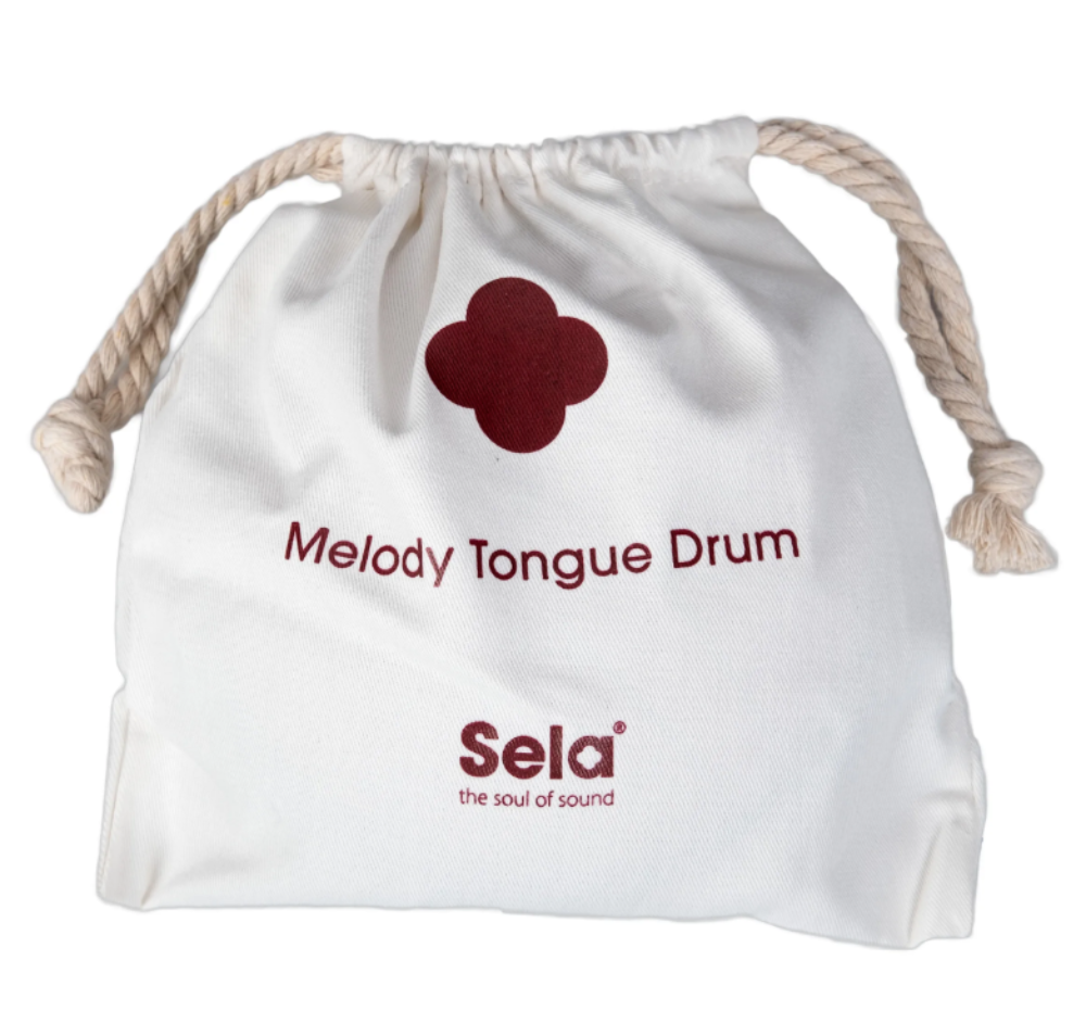 So that you can start right after unpacking, each Sela Melody Tongue Drum comes with two high-quality processed mallets with birch wood handle and round rubber head. The tone fields can also be struck with the fingers. The meditative sound of the Sela Melody Tongue Drum enchants players and listeners alike. On top of that, thanks to its compact size, it finds a chic place anywhere – whether at home, in the office, in the yoga studio or even on the road in your luggage. For safe transport, a practical cotton bag is included, which is lined with red velvet on the inside. Rubber feet ensure a secure stand, and a rubber ring protects the outer edge of the Sela Melody Tongue Drum from scratches.