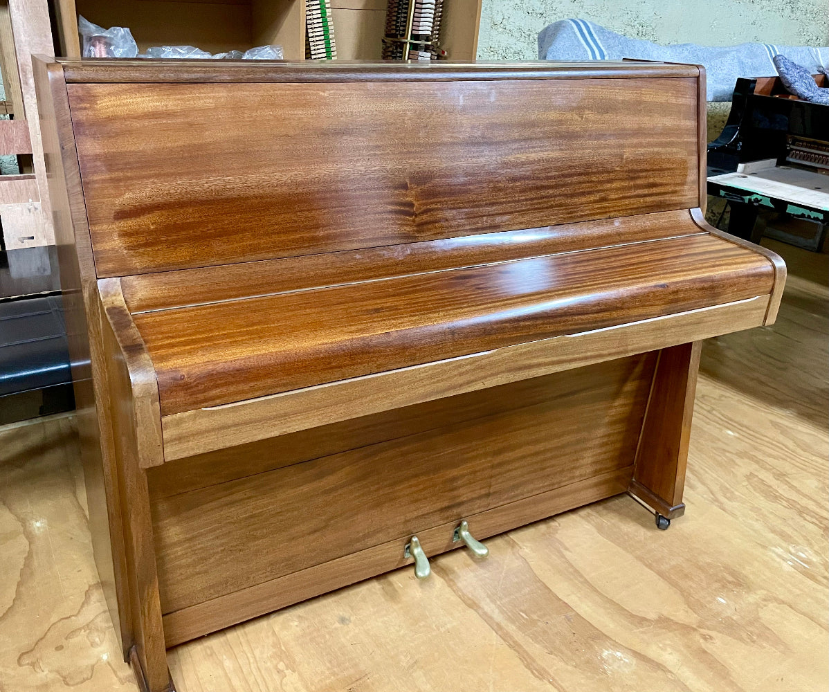 This lovely small, compact mahogany satin piano was made in the UK in 1960. In very tidy condition, this piano has had a full action service and is perfect for beginner and intermediate players. 85 notes, 2 pedals
