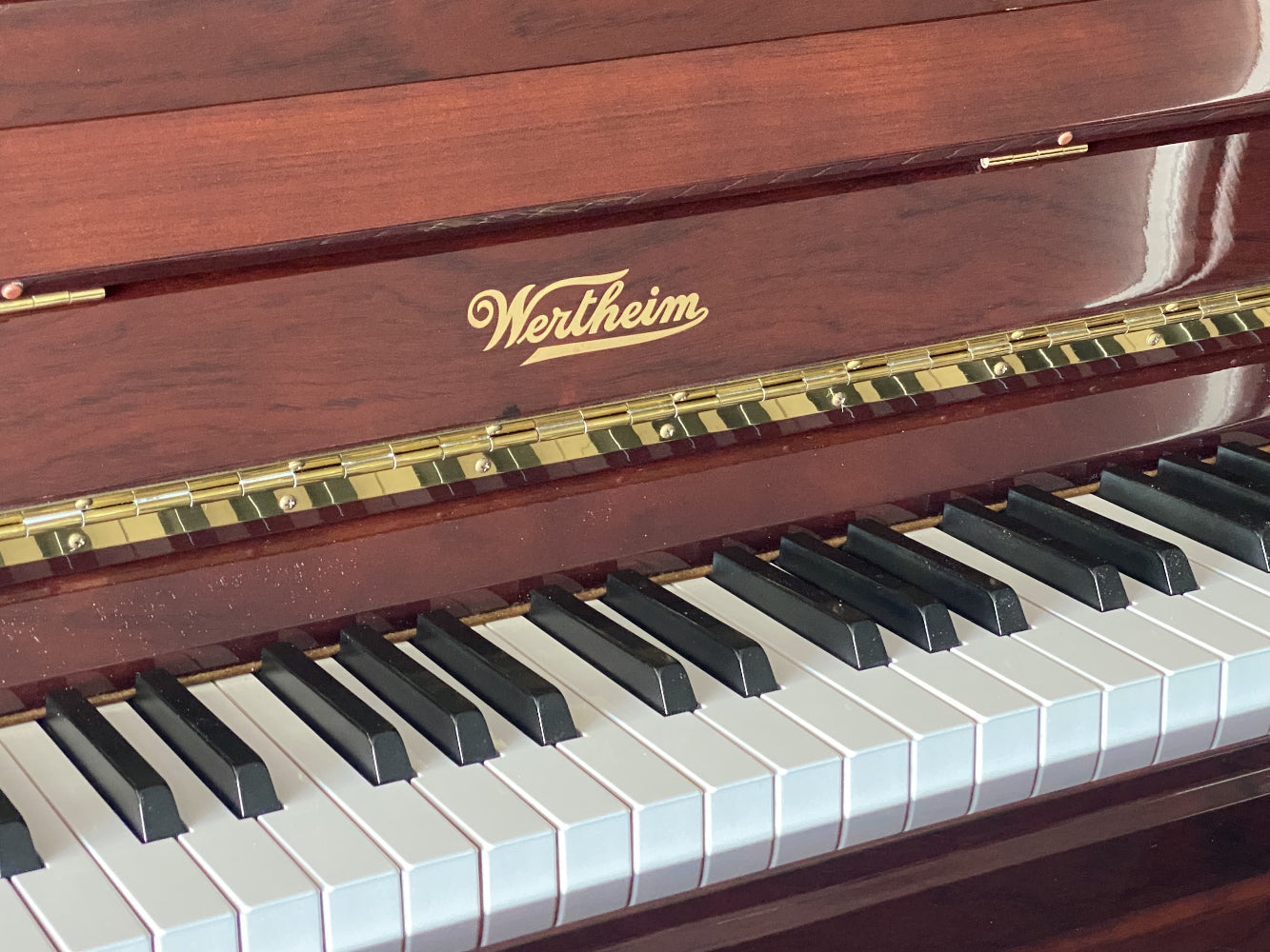 • Load image into Gallery viewer, Close-up of a Wertheim piano with visible branding.